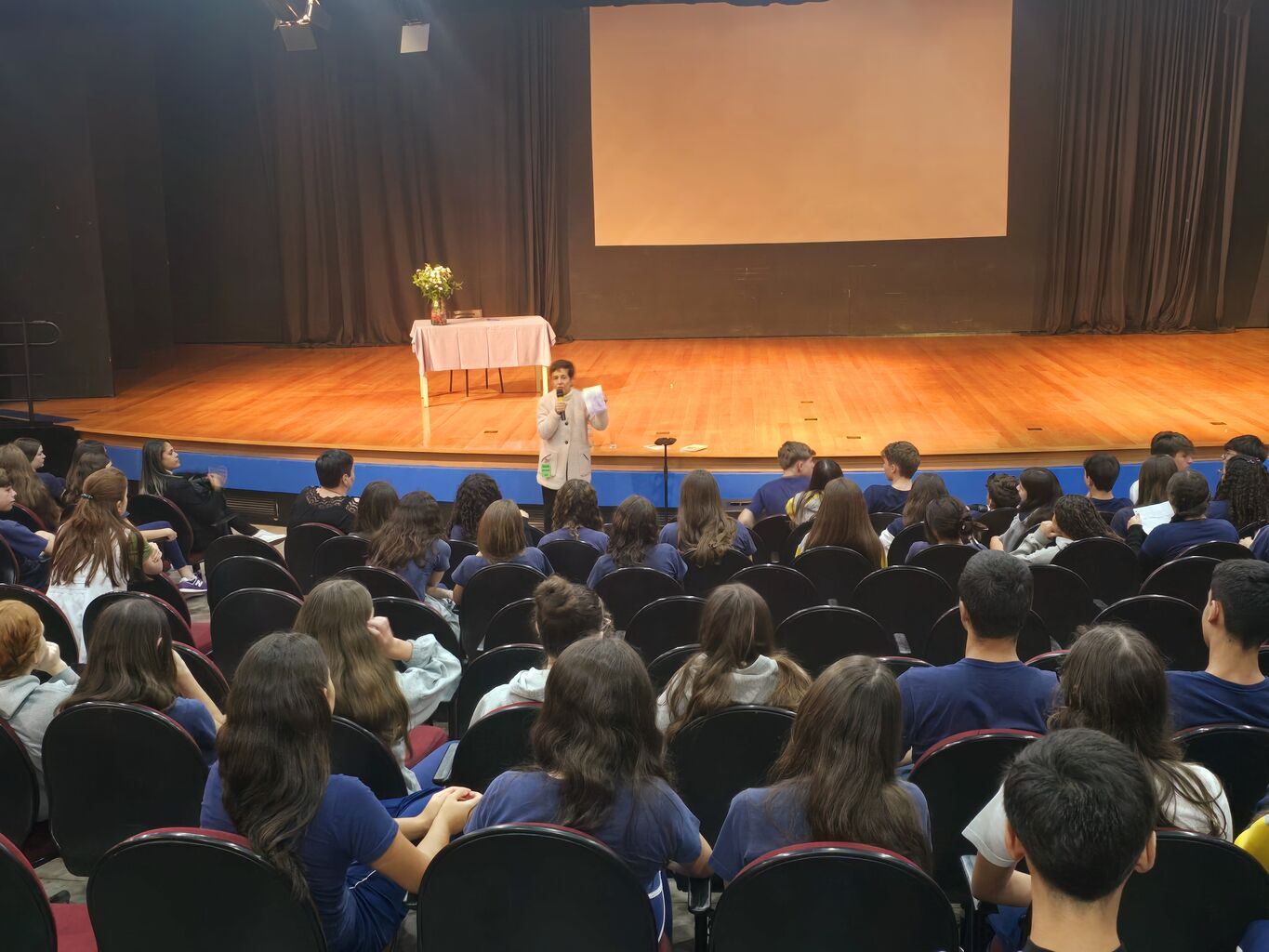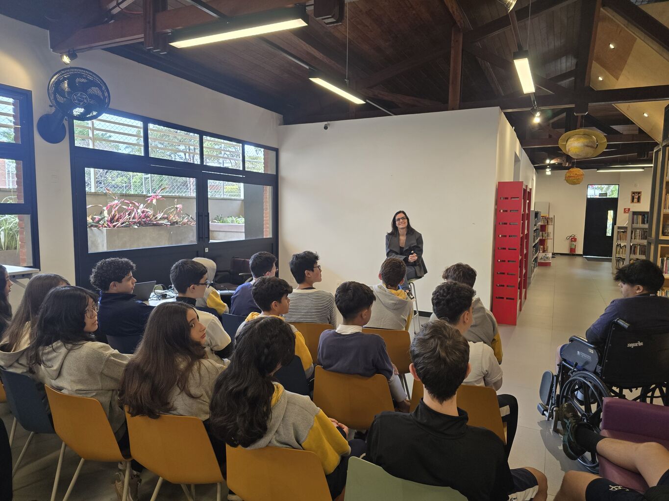 Os alunos do 8º ano conversaram com Paola Siviero, autora do livro O Auto da Maga Josefa. A obra mistura magia e elementos do folclore brasileiro, transportando os estudantes para o universo do Nordeste. Durante o encontro, Paola falou sobre os desafios de ser escritora de literatura fantástica no Brasil, um gênero que ainda enfrenta obstáculos no mercado editorial nacional. Ela também compartilhou detalhes de seu processo criativo e de como se tornou escritora, inspirando os alunos a valorizar a escrita e a persistência na busca pelo sonho literário. A partir da leitura, os alunos prepararam seminários que exploraram temas como cultura nordestina, folclore e música regional, aprofundando seu conhecimento e apreciação pela diversidade cultural brasileira.